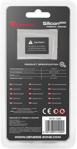 Genesis Silicon 800 je teplovodivá pasta, ktorá umožňuje efektívny odvod tepla z procesora, čo zaručí vášmu nadupanému hardvéru optimálnu teplotu a stabilný výkon pri náročnom používaní.Teplovodivá pasta Silicon 800 spĺňa tie najvyššie požiadavky, čoho dôkazom sú vysoké hodnoty tepelnej vodivosti, nízky tepelný odpor, nevodivosť a odolnosť proti korózii. Pastu nie je nutné zahrievať - maximálne hodnoty poskytuje ihneď po aplikácii.
