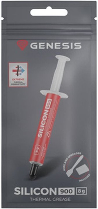 Zoznámte sa s GENESIS Silicon 900 - vysoko výkonnou teplovodivou pastou, ktorá vám pomôže vyhrať nerovný boj s teplotami. V sade nájdete navlhčenú handričku a špachtľu pre jednoduchú aplikáciu.Účinný boj proti teplotám