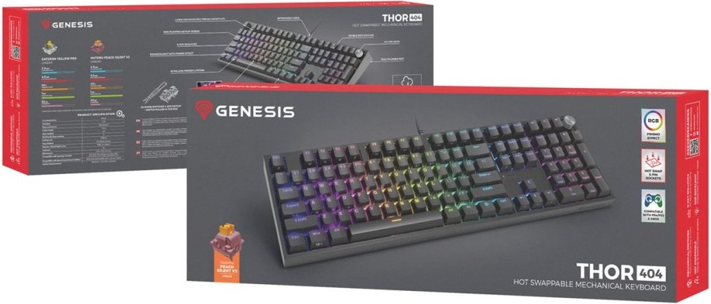 GENESIS Thor 404 - plnohodnotný variant klávesnice 404 TKL, ktorý ocenia nároční hráči. Gombík pre ovládanie hlasitosti - úplne nové riešenie pre ľahké používanie.Výkon, ktorý oceníte
