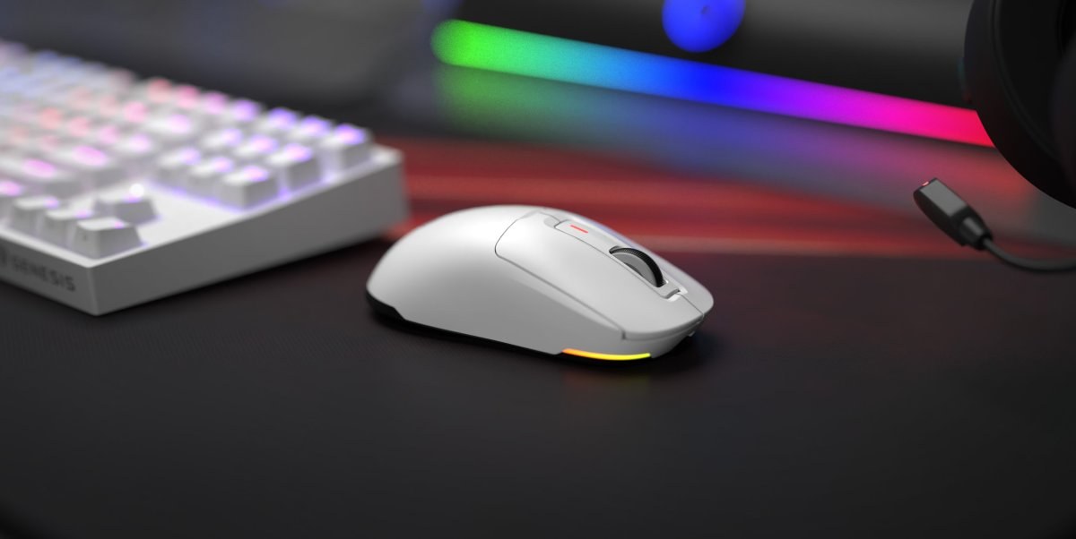 myš, herná, symetrická, bluetooth a USB prijímač, optický senzor, podsvietená, 6 tlačidiel, max. citlivosť 12000DPI, bielaZobraziť viac