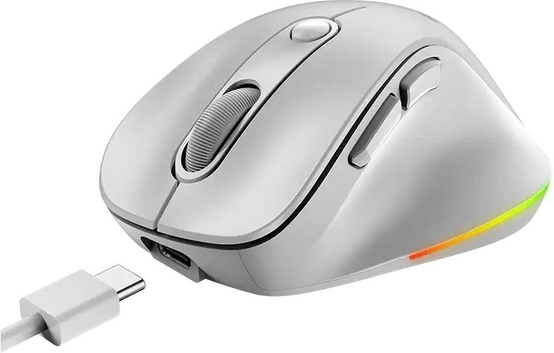 myš, kancelárska, pre pravákov, bluetooth a USB prijímač, optický senzor, podsvietená, 6 tlačidiel, tichý klik (silent click), max. citlivosť 24000DPI, bielaZobraziť viac
