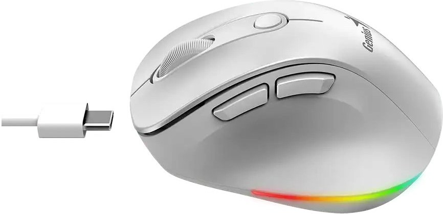 Genius Ergo 9000S Pro, bezdrôtová, vertikálna, 2.4Ghz+BT, tichá myš, biela