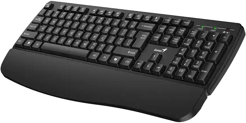 Genius KB-7123 Je bezdrôtová kancelárska klávesnica s CZ/SK rozložením, navrhnutá pre komfort (integrovaná opierka zápästia). Kľúčová funkcia je špeciálne tlačidlo AI Copilot a zvýšená odolnosť proti poliatiu.Spoľahlivé bezdrôtové pripojenie 2,4 GHz (dosah do 10 m). Pripája sa cez USB prijímač, ktorý je kompatibilný s portami USB-A alebo USB-C. Vďaka štandardnému Plug & Play protokolu je klávesnica kompatibilná nielen s PC a Mac, ale aj s väčšinou tabletov a mobilných zariadení, ktoré podporujú pripojenie externých USB vstupných zariadení (OTG/USB Host).