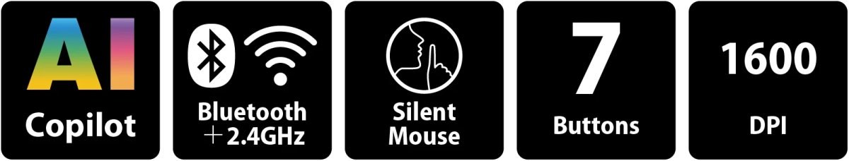Myš disponuje tichým kliknutím, ktoré eliminuje rušivé zvuky počas práce. Táto funkcia je obzvlášť cenná v knižniciach, kanceláriách a ďalších tichých prostrediach, kde nechcete rušiť okolie. Tichá prevádzka zabraňuje rušeniu ostatných ľudí v blízkosti.AI Copilot Integration