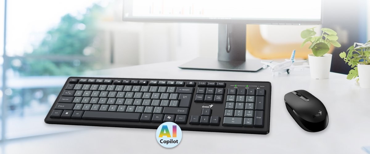 GENIUS Smart KM-8200 Dual Color. Tento čierno-sivý set klávesnice a myši s CZ+SK layoutom je skvelý na prácu aj domáce použitie. Ponúka klávesu pre AI asistenta Microsoft Copilot a spoľahlivé pripojenie cez 2,4 GHz.Technické parametre