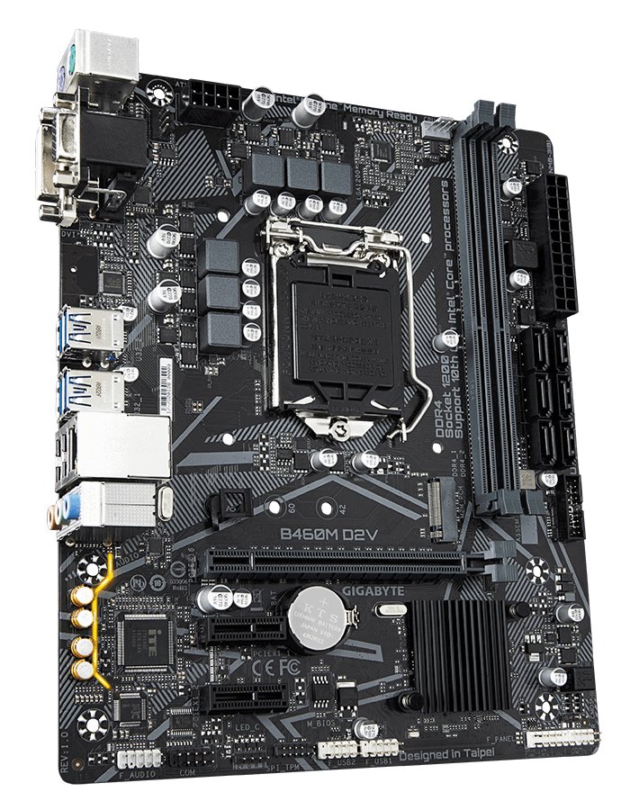 GIGABYTE B460M D2VDeska je vybavena grafickými výstupy pro použití s procesory s integrovaným grafickým jádrem. Základní deska grafickou kartu neobsahuje a bez použití odpovídajícího procesoru, budou tyto výstupy nefunkční.