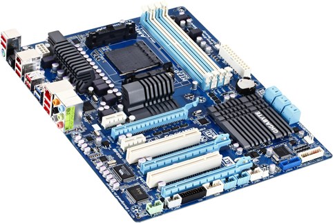 GIGABYTE 990XA-UD3Základní deska řadící se do kategorie mainstreamu pro zapálené hráče připravená na chystané 32nm procesory AMD high-endové řady FX postavené na architektuře Bulldozer. Jedná se o vynikající platformu pro vytvoření výkonného herního systému, v kterém si mohou hnízdit 2 grafické karty a to jak v režimu AMD CrossFireX, tak i nově v NVIDIA SLI díky zbrusu nové čipové sadě AMD 990FX. Propustnost při paralelním zapojení grafických akcelerátorů je poté x8 v každém slotu.