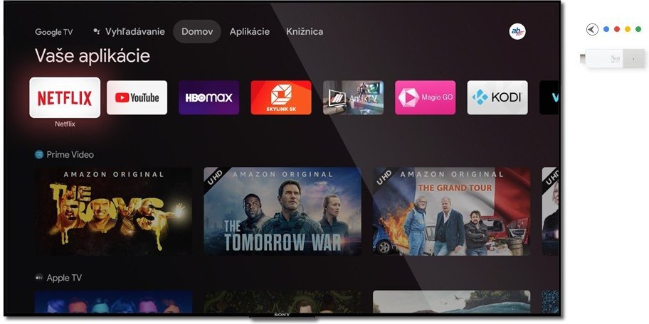 Cez Google TV Next viete sledovať najnovšie filmy a seriály bez reklám prostredníctvom streamovacích služieb ako sú Netflix, HBO MAX, Disney+, Prime Video, Apple TV, VOYO a ďalšie. Pozrite si najnovšie filmy alebo seriály kedykoľvek a kdekoľvek.* Limitácia zo strany Google: ak je zvolený SK alebo CZ jazyk rozhrania, tak sa môže stať, že vyhľadávanie aplikácií v obchode Google nemusí fungovať správne. V prípade potreby sa odporúča v nastaveniach zvoliť jazyk EN, následne vyhľadať a nainštalovať požadované aplikácie a opäť zmeniť jazyk rozhrania na preferovaný napr. SK alebo CZ.
