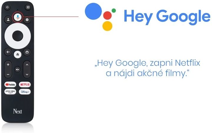 Súčasťou je aj inteligentný diaľkový ovládač s mikrofónom, ktorý podporuje Google Assistant. Stačí vysloviť príkaz – nájsť film, spustiť hudbu alebo zistiť predpoveď počasia – a systém to urobí za vás.