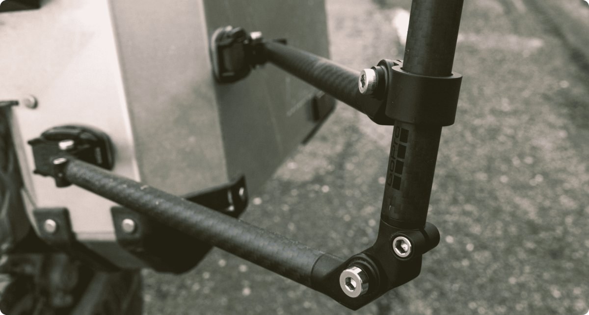 - Obsahuje 2 ramená z uhlíkových vlákien, držiak fotoaparátu s guľovým klobom, zakrivené + ploché priľnavé držiaky, montážna pracka, triangulačný podporný posúvač, 4 mm šestihranný kľúč, 2 extra šestihranné skrutky a spona na šestihranný kľúč