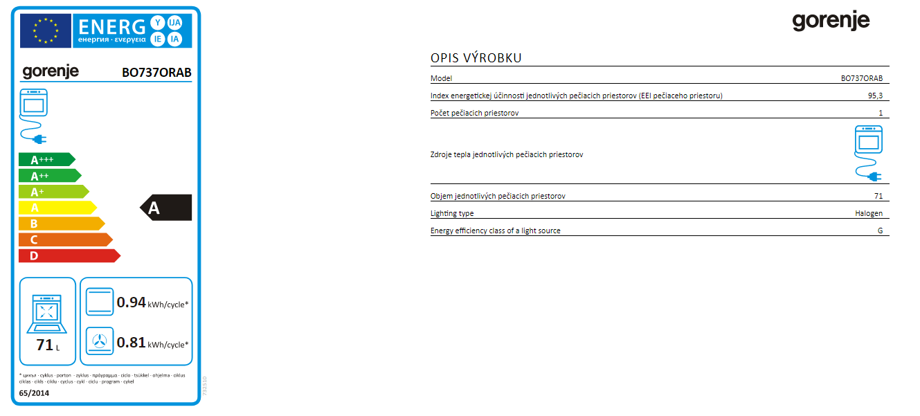Typ rúry: Elektrická rúraEnergetická trieda: A