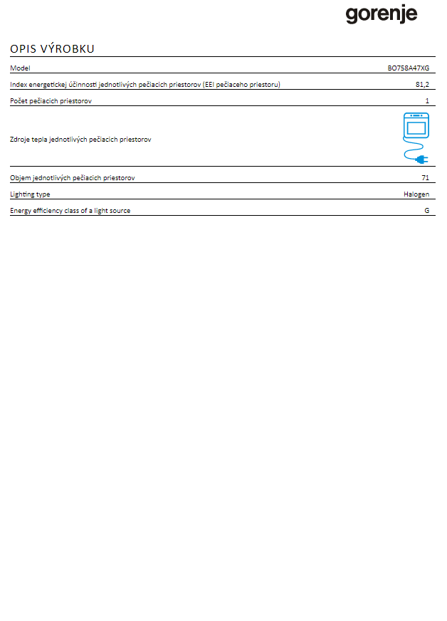 Gorenje BO758A47XG, elektrická vstavaná rúra