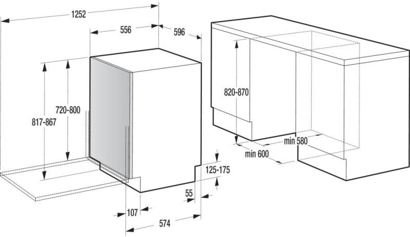 Minimálna hĺbka otvoru pre zabudovanie 570 mm