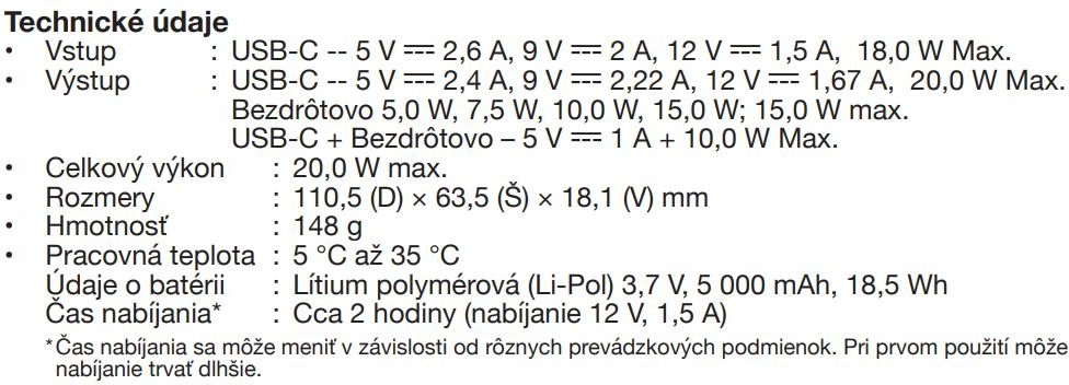 tenká USB-C powerbanka s PD 20 W a súčasne bezdrôtovým nabíjaním až 15 W
