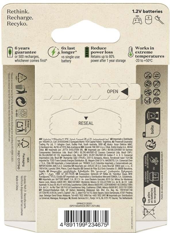 GP sa nezameriava len na výrobu špičkových výrobkov, ale aktívne hľadá spôsoby, ako znížiť vplyv svojich výrobkov a ich obalov na životné prostredie. Ich inovatívny rad nabíjateľných batérií a nabíjačiek s názvom Recyko je príkladom tohto úsilia. Tieto výrobky sú balené v papierových obaloch, ktoré neobsahujú plasty. Tým sa podporuje používanie recyklovaných materiálov a znižuje sa množstvo odpadu. Vďaka týmto obalom šetrným k životnému prostrediu sa môžete aj vy podieľať na pozitívnej zmene! Prispejte k zníženiu záťaže životného prostredia.