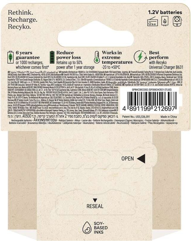 GP ReCyko 3000, nabíjateľná batéria (C), 2ks