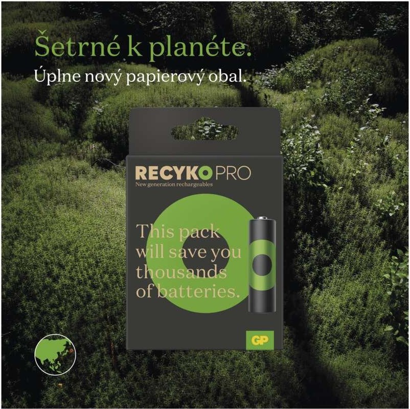 GP sa nezameriava len na výrobu špičkových výrobkov, ale aktívne hľadá spôsoby, ako znížiť vplyv svojich výrobkov a ich obalov na životné prostredie.Príkladom tohto úsilia je inovatívny rad nabíjateľných batérií a nabíjačiek Recyko Pro. Tieto výrobky sú balené v papierových obaloch, ktoré neobsahujú plasty. Tým sa podporuje používanie recyklovaných materiálov a znižuje sa množstvo odpadu. Vďaka tomuto baleniu šetrnému k našej planéte môžete byť aj vy súčasťou pozitívnej zmeny! Prispejte k zníženiu záťaže životného prostredia.