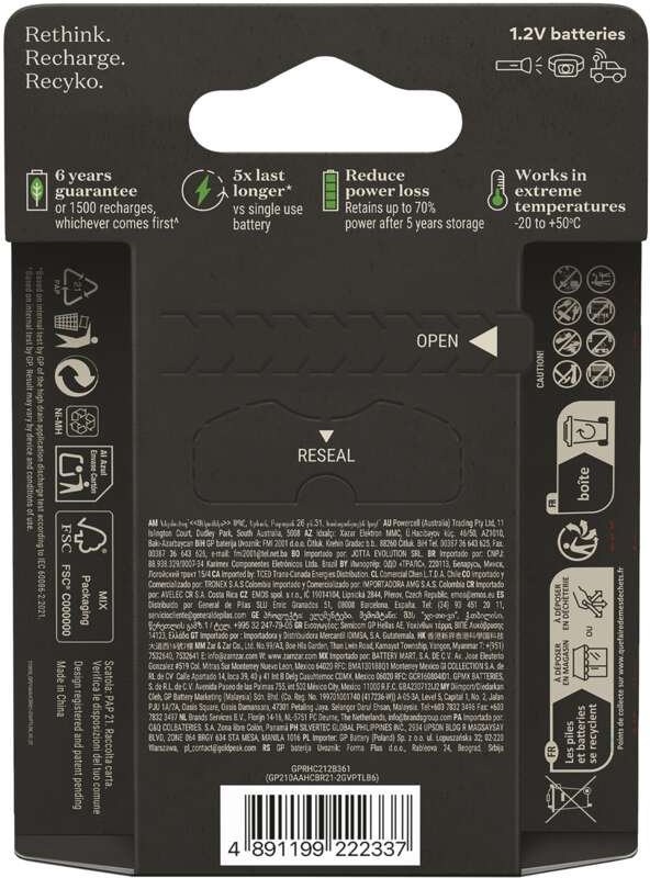 Batérie radu Recyko Pro sú navrhnuté tak, aby odolali najnáročnejším podmienkam v širokom rozsahu vonkajších teplôt. Či už sa nachádzate v mrazivom prostredí alebo v extrémnych horúčavách, batérie Recyko Pro GP zostávajú spoľahlivé a plne funkčné. Vďaka rozsahu prevádzkových teplôt od -20 °C do +50 °C sa môžete spoľahnúť na nekompromisný výkon a dlhú životnosť. Už sa nemusíte zaoberať obmedzeniami spôsobenými extrémnymi teplotami - vaše zariadenia budú pracovať v optimálnom režime, takže si môžete naplno užívať svoje aktivity a kreatívne projekty.Osobitná pozornosť venovaná ochrane našej planéty