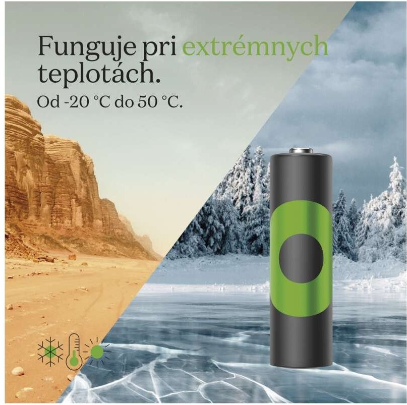 Batérie radu Recyko Pro sú navrhnuté tak, aby odolali najnáročnejším podmienkam v širokom rozsahu vonkajších teplôt. Či už sa nachádzate v mrazivom prostredí alebo v extrémnych horúčavách, batérie Recyko Pro GP zostávajú spoľahlivé a plne funkčné. Pre pracovné teploty od <> sa môžete spoľahnúť na nekompromisný výkon a dlhú životnosť. Už sa nemusíte zaoberať obmedzeniami spôsobenými extrémnymi teplotami - vaše zariadenia budú pracovať v optimálnom režime, aby ste si mohli naplno užívať svoje aktivity a tvorivé projekty.