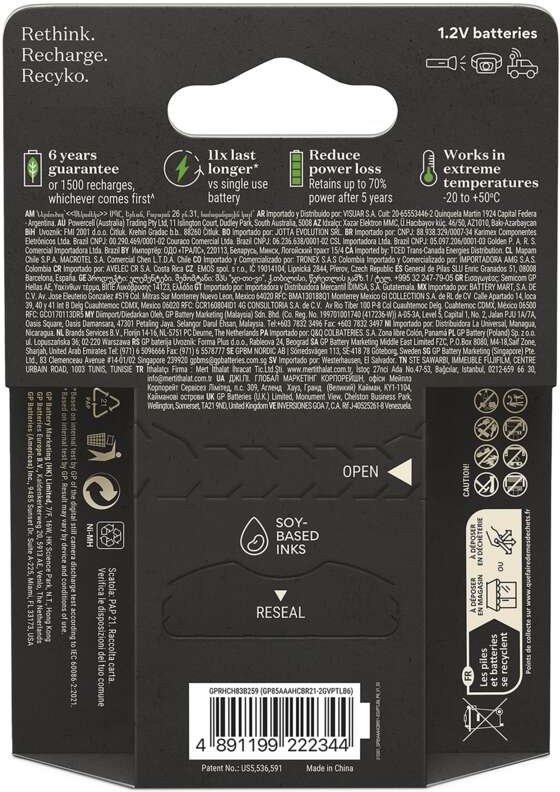 GP sa nezameriava len na výrobu špičkových výrobkov, ale aktívne hľadá spôsoby, ako znížiť vplyv svojich výrobkov a ich obalov na životné prostredie. Ich inovatívny rad nabíjateľných batérií a nabíjačiek s názvom Recyko Pro je príkladom tejto snahy. Tieto výrobky sú balené v papierových obaloch, ktoré neobsahujú plasty. Tým sa podporuje používanie recyklovaných materiálov a znižuje sa množstvo odpadu. S týmto obalom šetrným k našej planéte sa aj vy môžete podieľať na pozitívnej zmene!Prispieť k zníženiu záťaže životného prostredia.