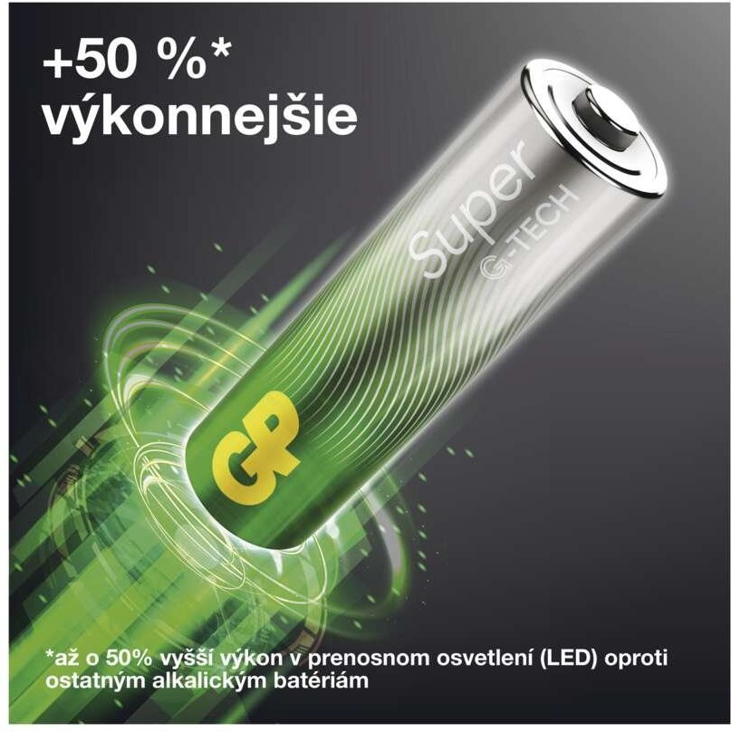Ak hľadáte batérie, ktoré poskytnú spoľahlivú a dlhotrvajúcu energiu pre vaše elektronické zariadenia, siahnite po nových alkalických batériách GP SUPER, ktoré sú vybavené revolučnou technológiou G-TECH s o 50 % vyššou výdržou ako ostatné alkalické batérie.