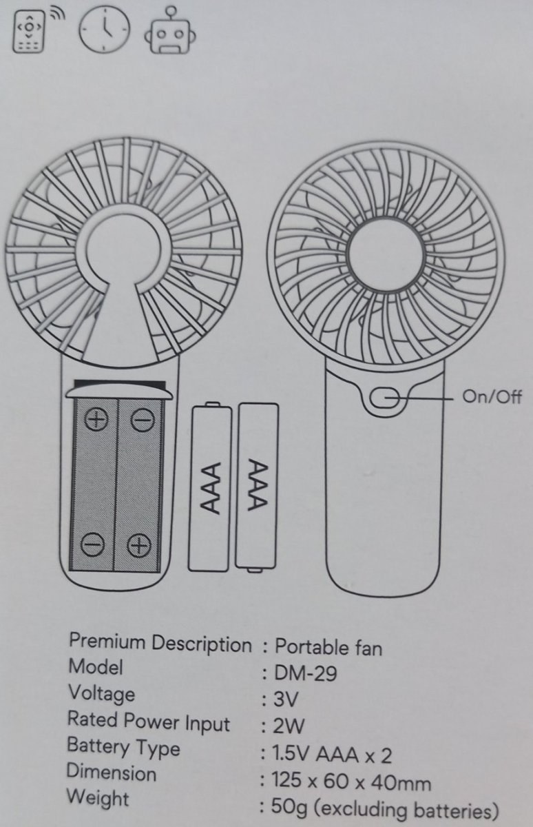 ručný ventilátor, 12x AAA alkalická batéria, 12x AA alkalická batériaZobraziť viac