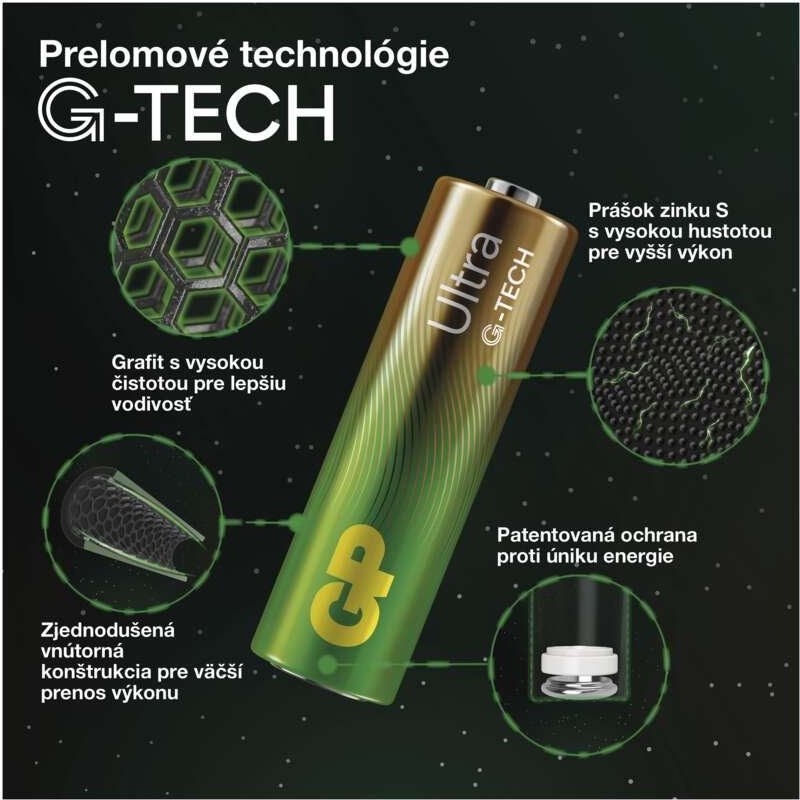 S týmto novým radom batérií od spoločnosti GP budete mať dostatok energie pre vaše najnáročnejšie úlohy a činnosti. Či už ste doma, v práci alebo na cestách, alkalické batérie ULTRA s technológiou G-TECH sú vaším spoľahlivým partnerom, ktorý vám dodá potrebnú energiu.
