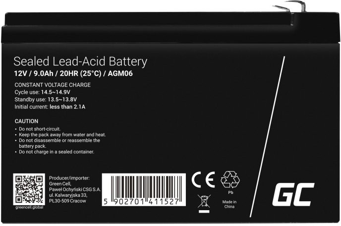 Green Cell AGM akumulátor s kapacitou 12V je vyrobený z najkvalitnejších materiálov. Zariadenie je ideálne na intenzívne používanie, ale aj na čas od času. Akumulátor je založený na technológii AGM, čo znamená, že elektrolyt je absorbovaný sklolaminátovým separátorom, ktorý zabraňuje jeho úniku. Zariadenie tak môže pracovať v rôznych polohách, nielen vertikálne. Ide o perfektnú a oveľa bezpečnejšiu alternatívu k oloveným akumulátorom.Ideálne pre vyrovnávaciu a cyklickú prevádzku - batériu možno použiť okrem iného v UPS, elektrických hračkách, poplašných systémoch, monitorovacích alebo prenosných zariadeniach