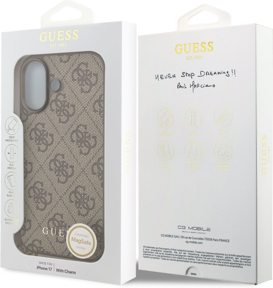 Guess 4G Charm kryt pre iPhone 17, hnedý