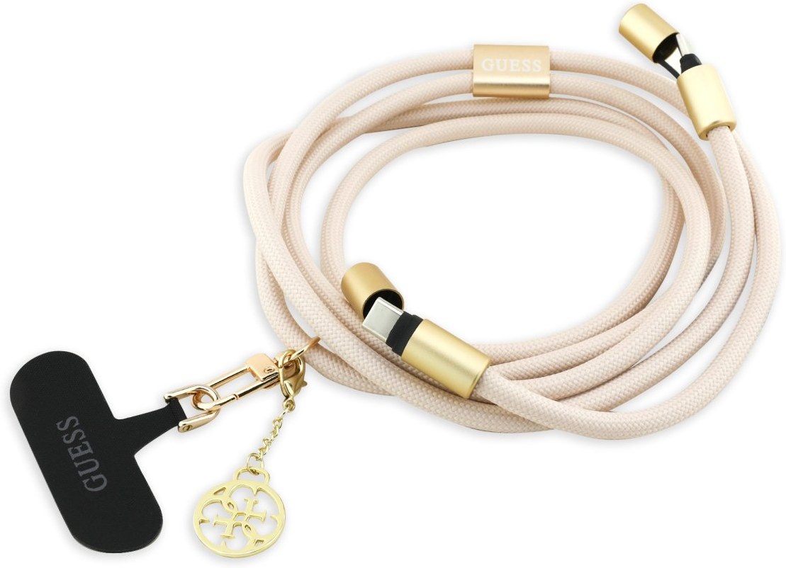 Guess Crossbody Popruh 4G Charm s nabíjacím káblom USB-C/USB-C, béžový
