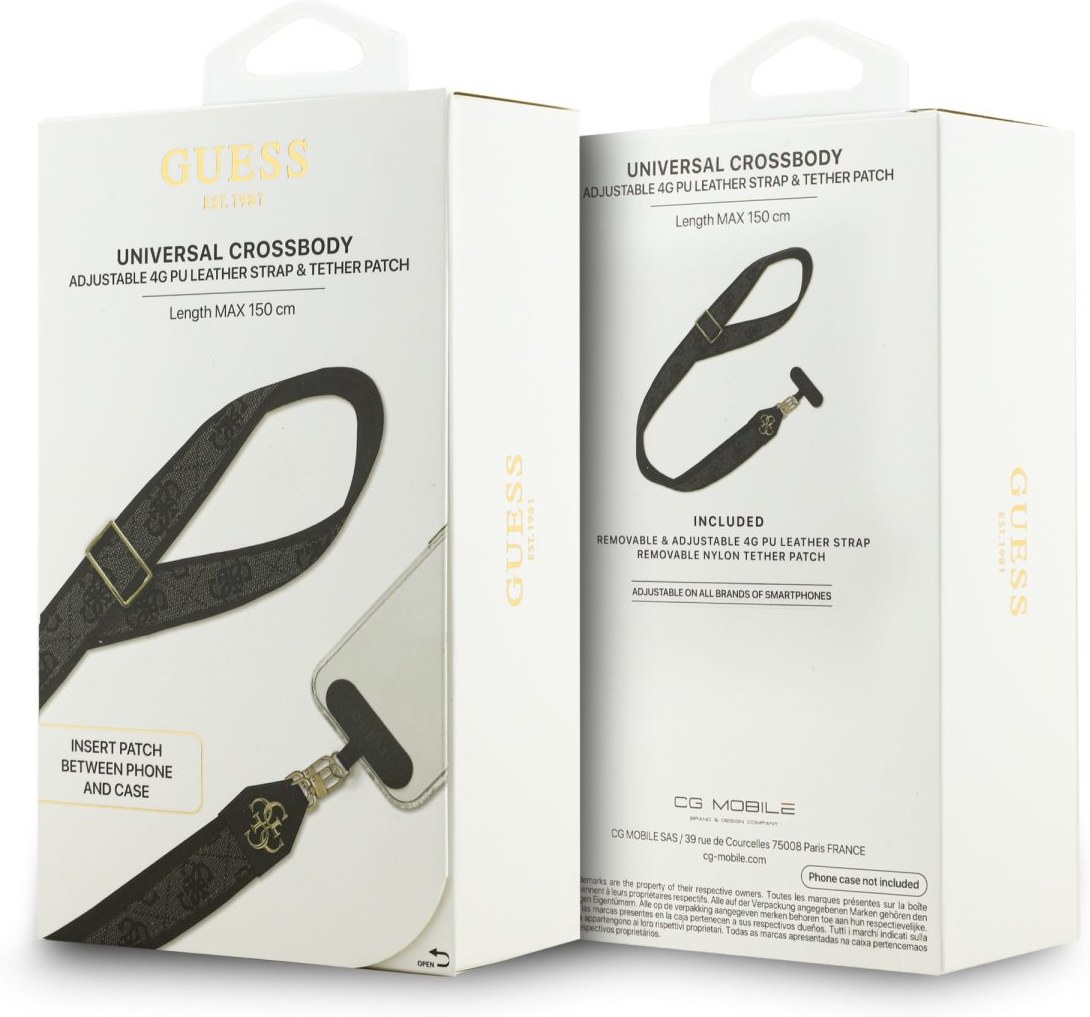 Predstavujeme vám Guess Crossbody Popruh 4G Metal Logo - elegantný a štýlový doplnok, ktorý vynikne pri každej príležitosti a zároveň ponúkne praktické využitie. Popruh je vyrobený z kvalitného syntetického materiálu, ktorý pripomína pravú kožu - je pevný, príjemný na dotyk a ľahko sa čistí. Štýl dopĺňa viditeľné 4G logo Guess a luxusne pôsobiace zlaté kovové detaily, ktoré dodávajú popruhu prémiový vzhľad. Bez ohľadu na to, aký máte telefón, tento popruh je pre vás ideálnou voľbou. Vďaka univerzálnemu uchyteniu je ideálny na nosenie s väčšinou telefónov so zadným krytom. A čo je najlepšie, môžete si ho nosiť presne tak, ako sa vám zapáči! Nastaviteľná dĺžka umožňuje prispôsobiť ju individuálnym preferenciám užívateľa - skrátite dĺžku, ako potrebujete a môžete popruh nosiť napríklad pripnutý na kabelke, na ramene ako kabelku, uviazaný okolo zápästia, okolo krku, zaviazaný na pútko na opasok alebo akýmkoľvek iným spôsobom, ktorý vás len napadne. S ikonickou potlačou a kovovým logom Guess 4G sa stane tento crossbody popruh štýlovým doplnkom vášho outfitu.Crossbody popruh sa veľmi ľahko inštaluje - stačí medzi ochranné puzdro a telefón vložiť špeciálnu vložku s pútkom.