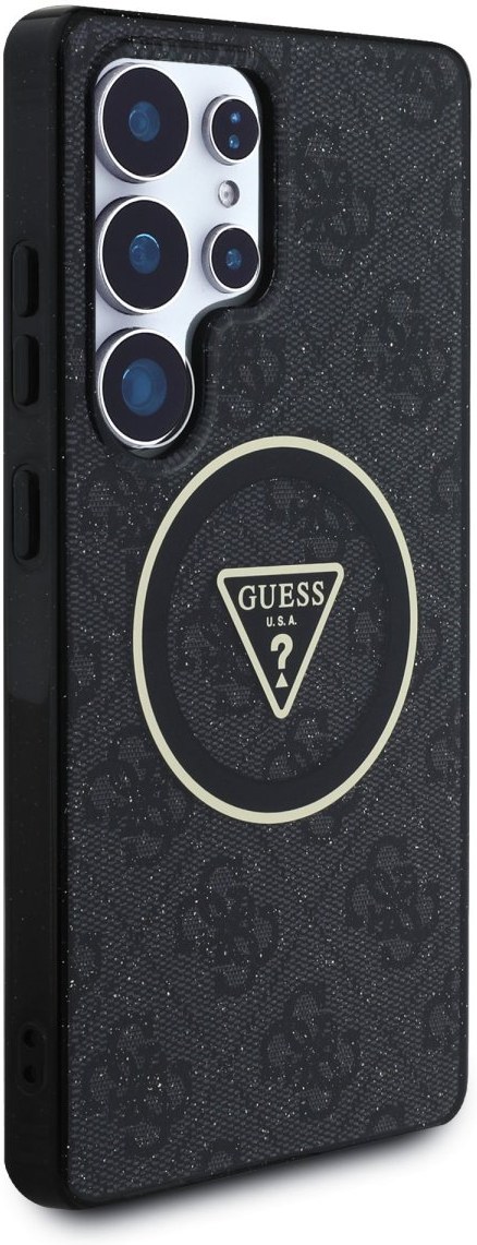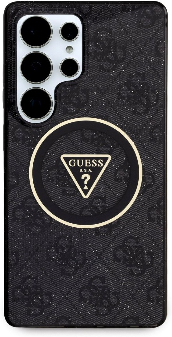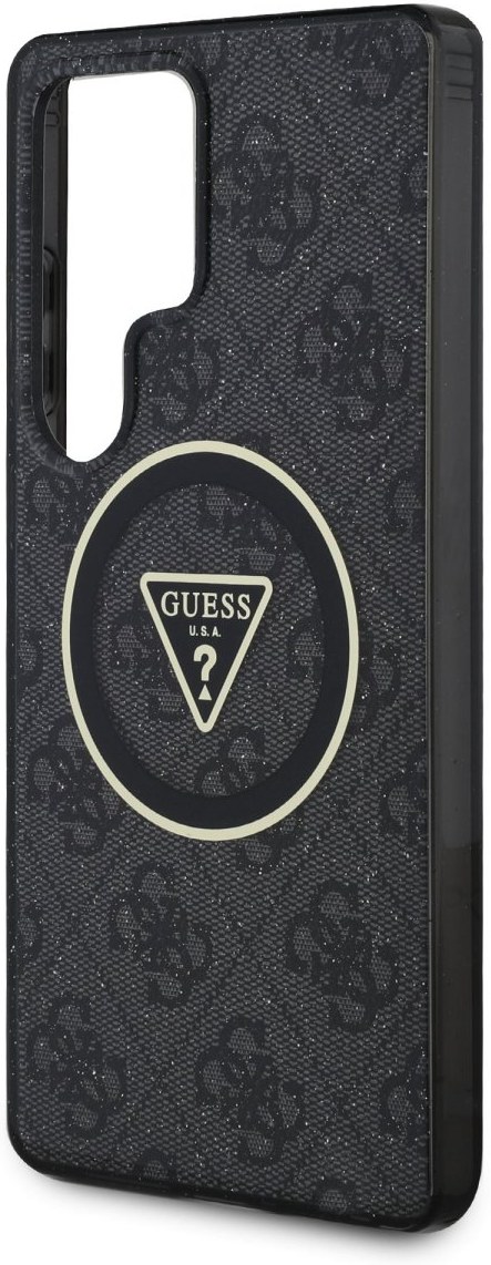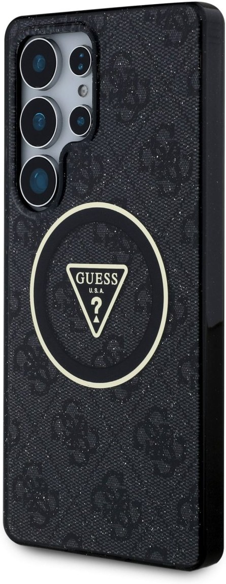 Guess IML 4G Glitter and Triangle Logo MagSafe kryt pre Samsung Galaxy S25 Ultra, čierny