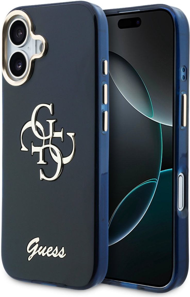 Guess IML 4G Script Metal Logo kryt pre iPhone 17, modrý