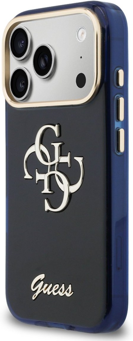 Guess IML 4G Script Metal Logo kryt pre iPhone 17 Pro, modrý