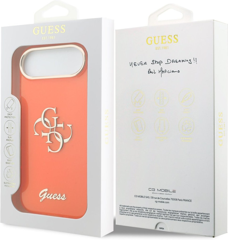 Guess IML 4G Script Metal Logo kryt pre iPhone Air, oranžový