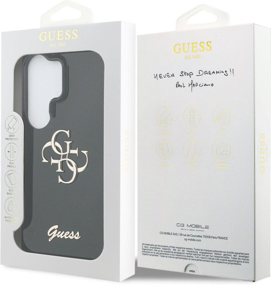 Dizajn krytu vyniká kovovým 4G logom Guess na zadnej strane, čo z neho robí nielen praktický, ale aj štýlový doplnok, ktorý skvele doplní váš outfit.