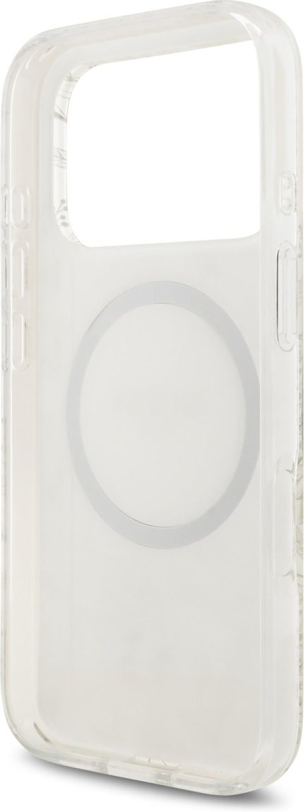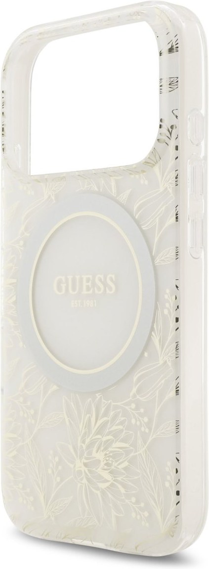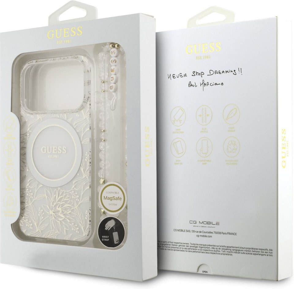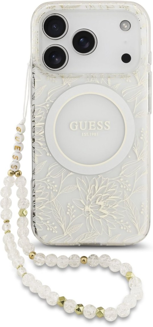 Guess IML Flowers Allover Strap MagSafe kryt pre iPhone 17 Pro, biely