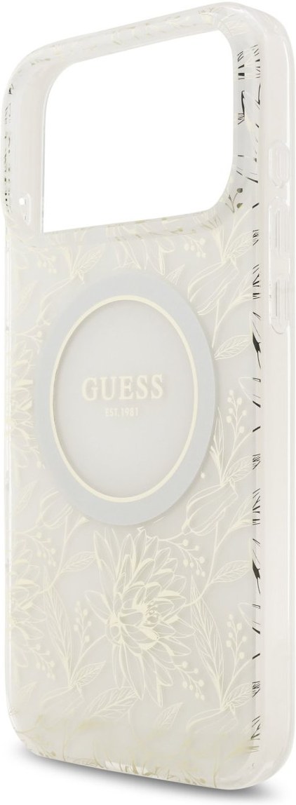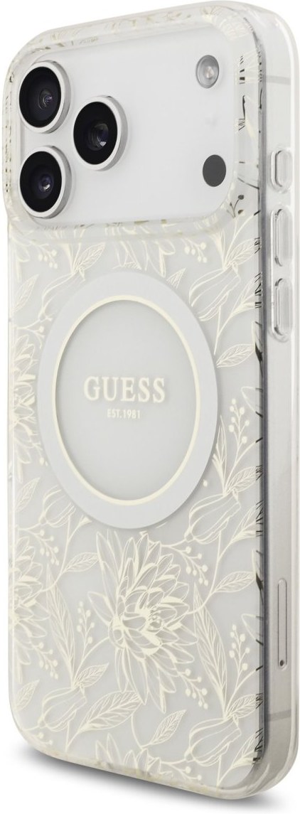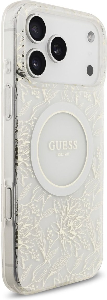Guess IML Flowers Allover Strap MagSafe kryt pre iPhone 17 Pro Max, biely