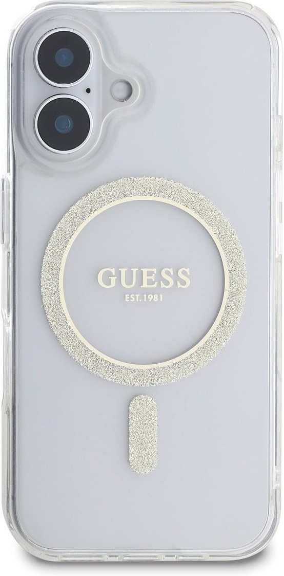 Guess IML Glitter Ring MagSafe kryt pre iPhone 16 Plus, transparentný