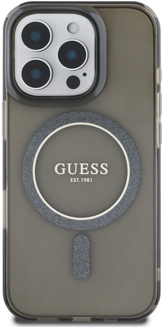 Guess IML Glitter Ring MagSafe kryt pre iPhone 16 Pro, čierny