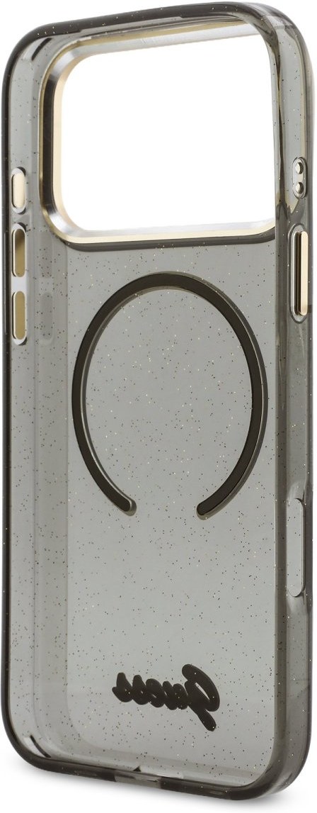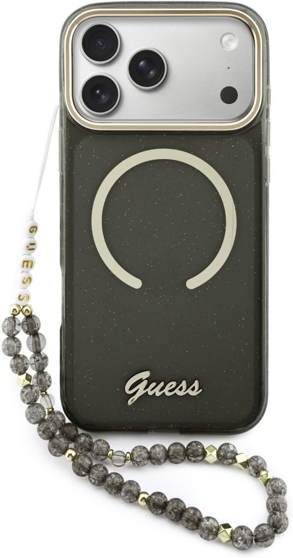 Guess IML Glitter Script Strap MagSafe kryt pre iPhone 17 Pro Max, čierny