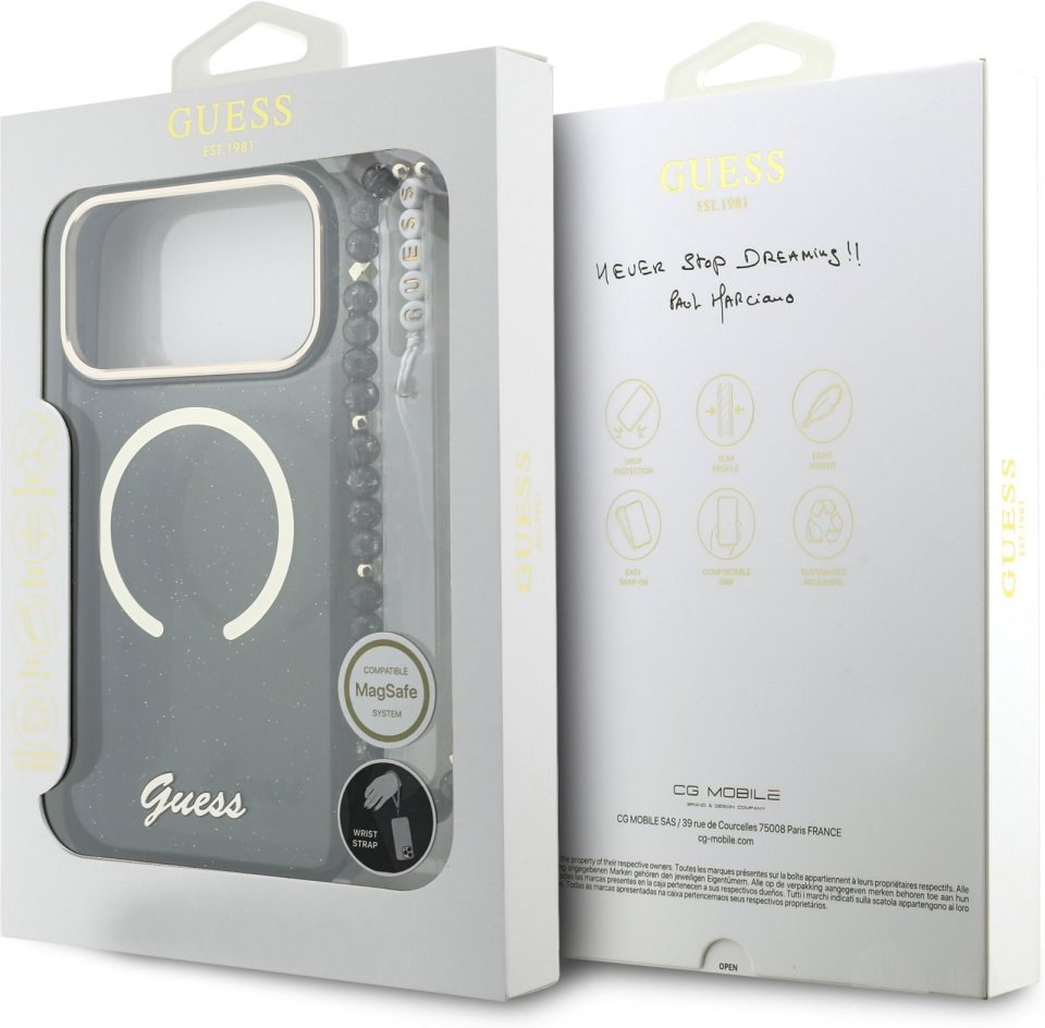 Guess IML Glitter Script Strap MagSafe kryt pre iPhone 17 Pro Max