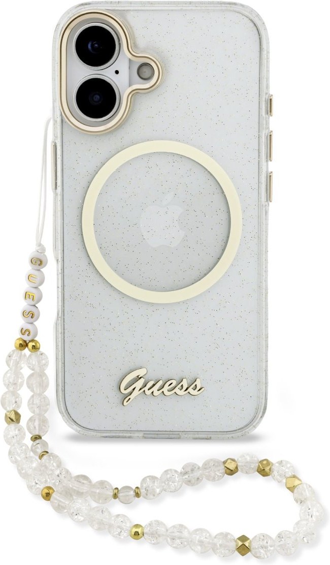 Guess IML Glitter Script Strap MagSafe zadný kryt na telefón je skvelým doplnkom pre všetkých milovníkov štýlu a praktickosti. Tento kryt je vyrobený z kombinácie pevného PC plastu na zadnej strane a TPU mäkkého plastu na bokoch, čo vytvára dokonalú symbiózu odolnosti a pohodlia. Vďaka presnému tvaru perfektne sedí na telefóne a umožňuje ľahký prístup ku všetkým tlačidlám a konektorom. Tento kryt podporuje technológiu MagSafe, čo znamená, že je kompatibilný s bezdrôtovým nabíjaním a ďalšími MagSafe doplnkami. Dizajn krytu vyniká logom Guess na zadnej strane a trblietavým lookom, čo z neho robí nielen praktický, ale aj štýlový doplnok, ktorý skvele doplní váš outfit. Súčasťou krytu je aj korálkové pútko, ktoré plní nielen estetickú funkciu, ale zaistí aj bezpečné držanie telefónu v ruke. Pokiaľ hľadáte kryt, ktorý kombinuje eleganciu a funkčnosť, je tento kúsok od GUESS tou pravou voľbou pre vás.Kľúčové vlastnosti