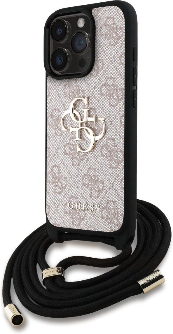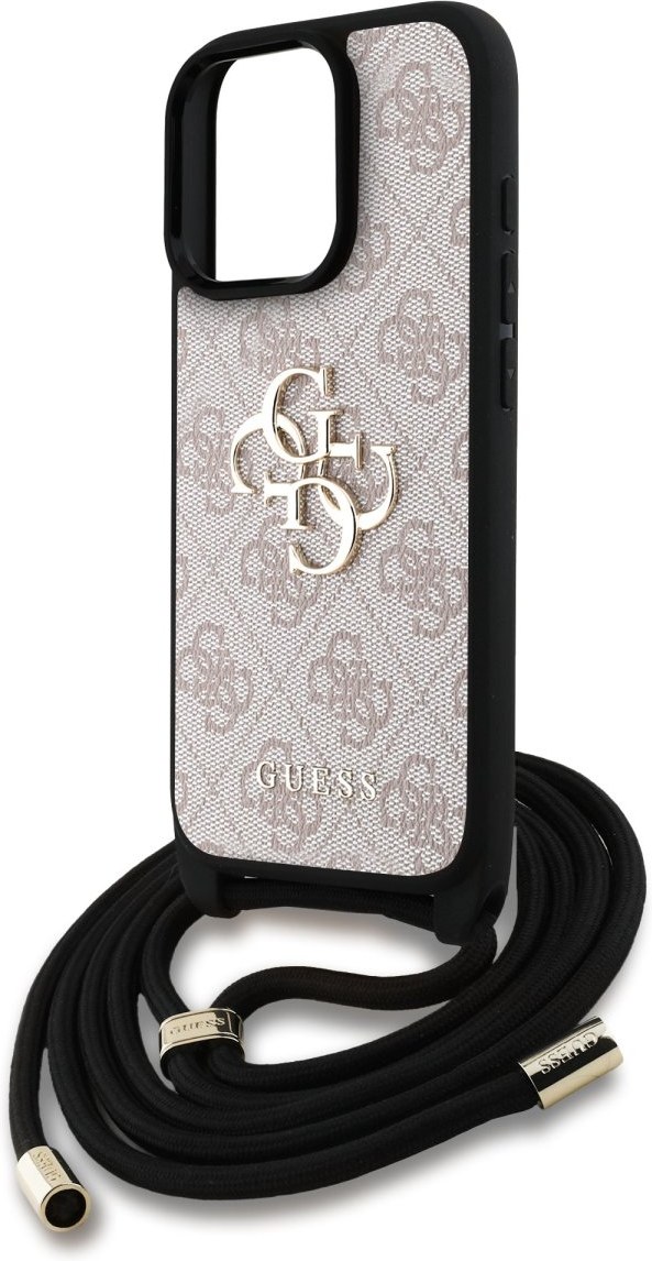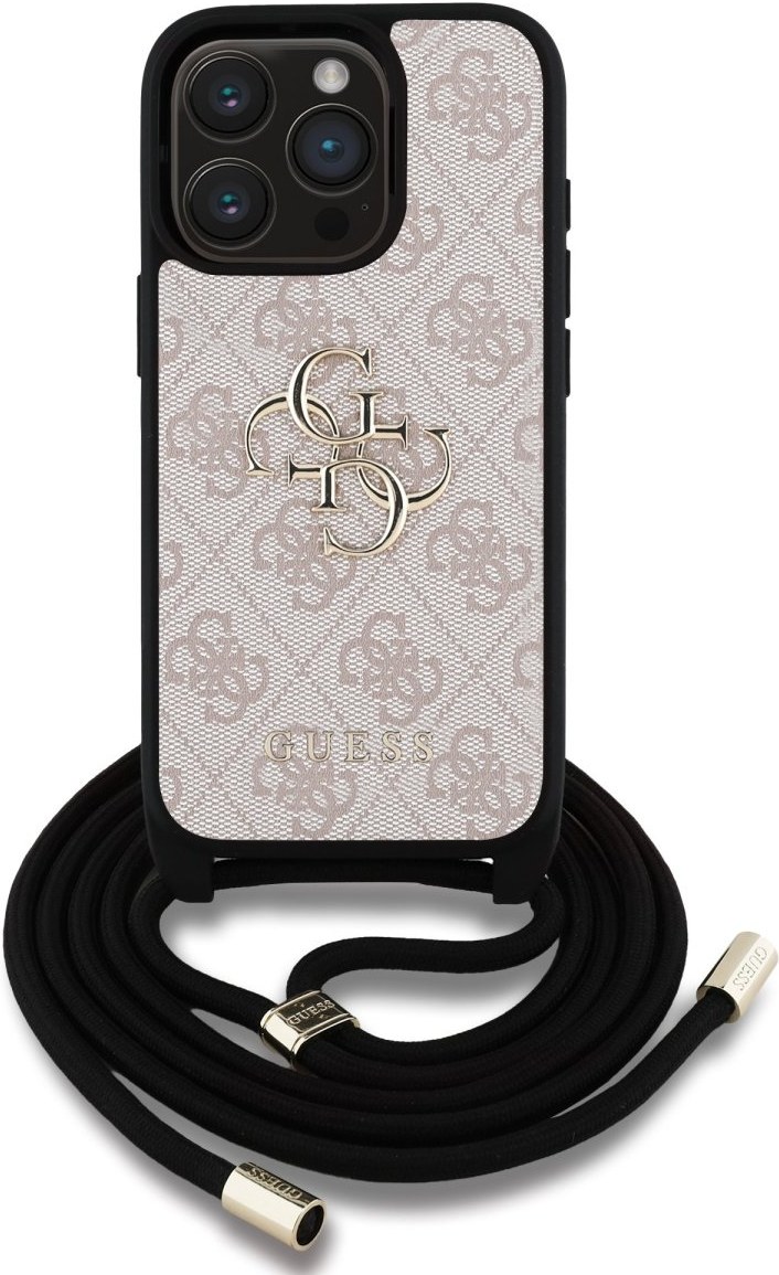 Guess PU 4G Metal Logo Crossbody Popruh + kryt pre iPhone 15 Pro, ružový