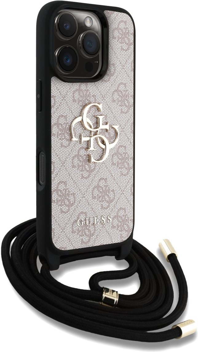 Guess PU 4G Metal Logo Crossbody popruh + kryt pre iPhone 16 Pro, ružový