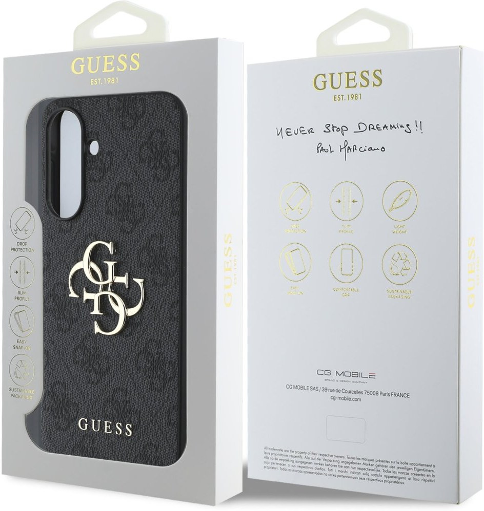 Prémiový zadný kryt Guess PU 4G Metal Logo sa vyznačuje elegantným, charakteristickým 4G vzorom, doplneným o logo GUESS. Kryt je vyrobený z ľahkého a odolného polyuretánu (PU) s povrchovou úpravou z PU kože a ponúka tak nielen skvelú ochranu telefónu, ale aj pohodlie pri používaní. Táto povrchová úprava zaisťuje pevný úchop, čo minimalizuje riziko, že telefón vykĺzne z ruky. Vďaka presnému tvaru perfektne sedí na telefóne a umožňuje ľahký prístup ku všetkým tlačidlám a konektorom. Tento prvotriedny kryt doplnený výrazným 4G logom a je skvelou ponukou pre ľudí, ktorí si v móde cenia nielen exkluzívneho vzhľadu, ale aj vysokej kvality a funkčnosti. Je to nevyhnutný doplnok pre každého, kto hľadá kombináciu elegancie a prestíže.Kľúčové vlastnosti