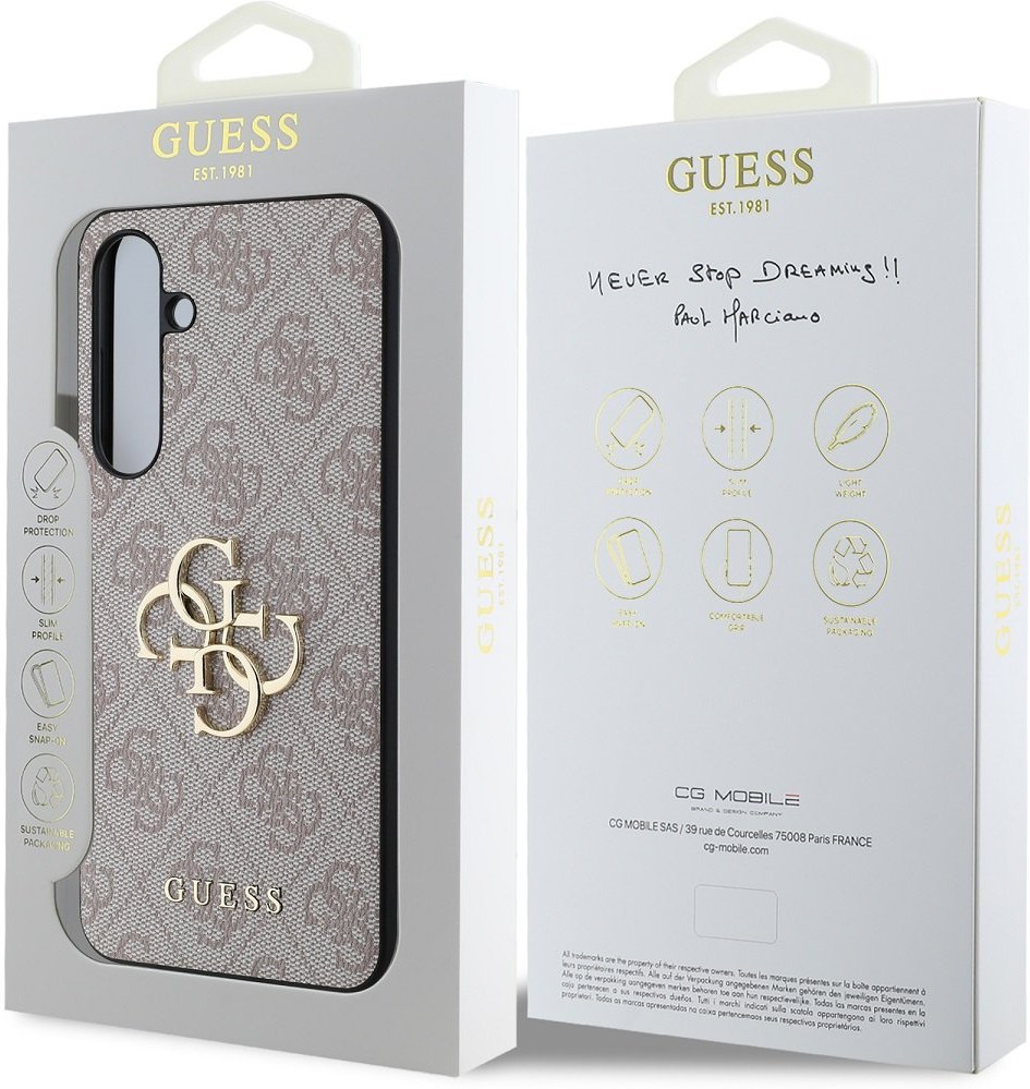 Prémiový zadný kryt Guess PU 4G Metal Logo sa vyznačuje elegantným, charakteristickým 4G vzorom, doplneným o logo GUESS. Kryt je vyrobený z ľahkého a odolného polyuretánu (PU) s povrchovou úpravou z PU kože a ponúka tak nielen skvelú ochranu telefónu, ale aj pohodlie pri používaní. Táto povrchová úprava zaisťuje pevný úchop, čo minimalizuje riziko, že telefón vykĺzne z ruky. Vďaka presnému tvaru perfektne sedí na telefóne a umožňuje ľahký prístup ku všetkým tlačidlám a konektorom. Tento prvotriedny kryt doplnený výrazným 4G logom a je skvelou ponukou pre ľudí, ktorí si v móde cenia nielen exkluzívneho vzhľadu, ale aj vysokej kvality a funkčnosti. Je to nevyhnutný doplnok pre každého, kto hľadá kombináciu elegancie a prestíže.Vlastnosti