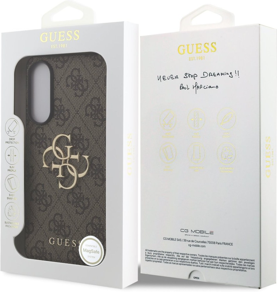 Prémiový zadný kryt Guess PU 4G Metal Logo sa vyznačuje elegantným, charakteristickým 4G vzorom, doplneným o logo GUESS. Kryt je vyrobený z ľahkého a odolného polyuretánu (PU) s povrchovou úpravou z PU kože a ponúka tak nielen skvelú ochranu telefónu, ale aj pohodlie pri používaní. Táto povrchová úprava zaisťuje pevný úchop, čo minimalizuje riziko, že telefón vykĺzne z ruky. Vďaka presnému tvaru perfektne sedí na telefóne a umožňuje ľahký prístup ku všetkým tlačidlám a konektorom. Tento prvotriedny kryt doplnený výrazným 4G logom a je skvelou ponukou pre ľudí, ktorí si v móde cenia nielen exkluzívneho vzhľadu, ale aj vysokej kvality a funkčnosti. Je to nevyhnutný doplnok pre každého, kto hľadá kombináciu elegancie a prestíže.Kľúčové vlastnosti
