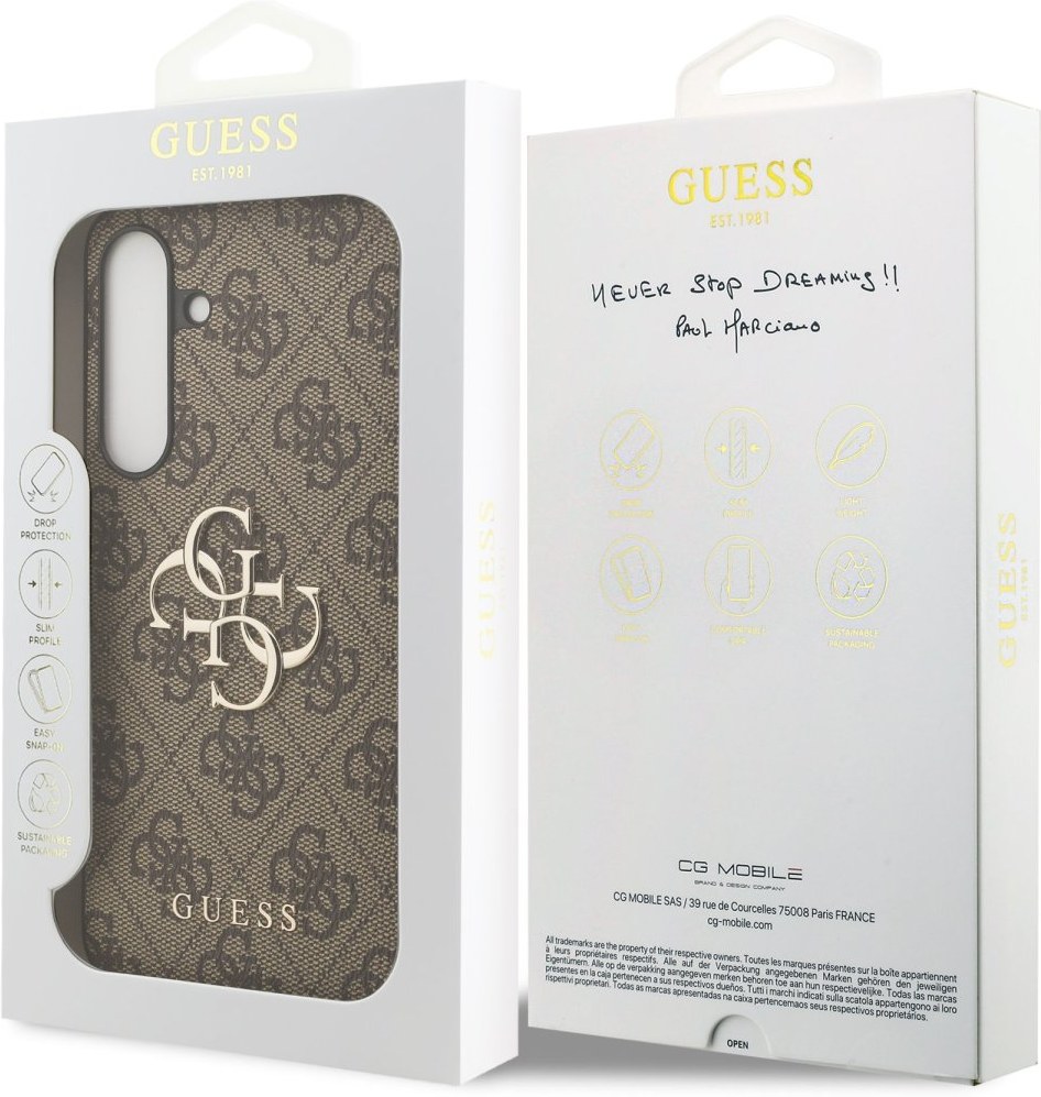 Prémiový zadný kryt Guess PU 4G Metal Logo sa vyznačuje elegantným, charakteristickým 4G vzorom, doplneným o logo GUESS. Kryt je vyrobený z ľahkého a odolného polyuretánu (PU) s povrchovou úpravou z PU kože a ponúka tak nielen skvelú ochranu telefónu, ale aj pohodlie pri používaní. Táto povrchová úprava zaisťuje pevný úchop, čo minimalizuje riziko, že telefón vykĺzne z ruky. Vďaka presnému tvaru perfektne sedí na telefóne a umožňuje ľahký prístup ku všetkým tlačidlám a konektorom. Tento prvotriedny kryt doplnený výrazným 4G logom a je skvelou ponukou pre ľudí, ktorí si v móde cenia nielen exkluzívneho vzhľadu, ale aj vysokej kvality a funkčnosti. Je to nevyhnutný doplnok pre každého, kto hľadá kombináciu elegancie a prestíže.Kľúčové vlastnosti