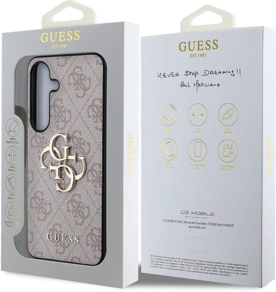 Prémiový zadný kryt Guess PU 4G Metal Logo sa vyznačuje elegantným, charakteristickým 4G vzorom, doplneným o logo GUESS. Kryt je vyrobený z ľahkého a odolného polyuretánu (PU) s povrchovou úpravou z PU kože a ponúka tak nielen skvelú ochranu telefónu, ale aj pohodlie pri používaní. Táto povrchová úprava zaisťuje pevný úchop, čo minimalizuje riziko, že telefón vykĺzne z ruky. Vďaka presnému tvaru perfektne sedí na telefóne a umožňuje ľahký prístup ku všetkým tlačidlám a konektorom. Tento prvotriedny kryt doplnený výrazným 4G logom a je skvelou ponukou pre ľudí, ktorí si v móde cenia nielen exkluzívneho vzhľadu, ale aj vysokej kvality a funkčnosti. Je to nevyhnutný doplnok pre každého, kto hľadá kombináciu elegancie a prestíže.Vlastnosti